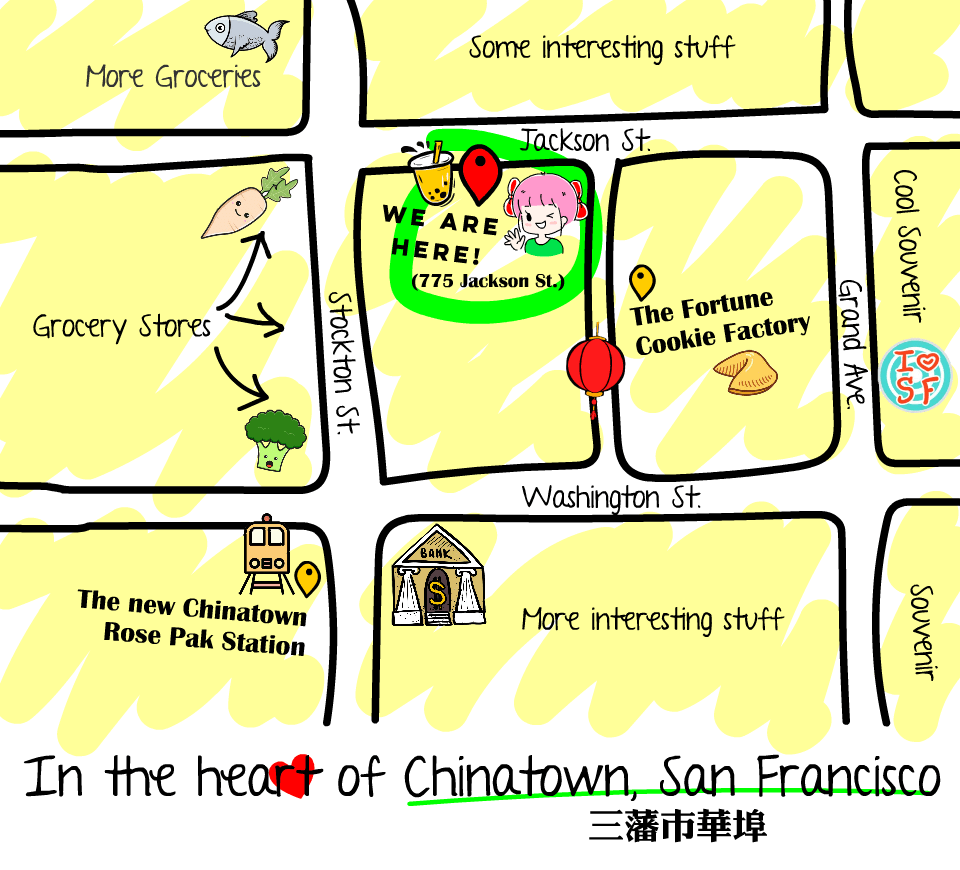 We are conveniently located just a block and a half from the Chinatown Rose Pak Station—making it easy to stop by for a refreshing drink. Feel free to click the map for directions: